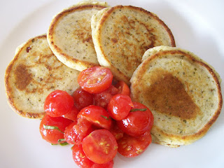 Whiz all ingredients in a mini food processor (a post-op MUST HAVE) Spray pan with non-stick spray. Cook on low till golden, flip and flatten. Cook till golden. Serve with Shelly's Italian Salsa. Makes 8 silver dollar size.
